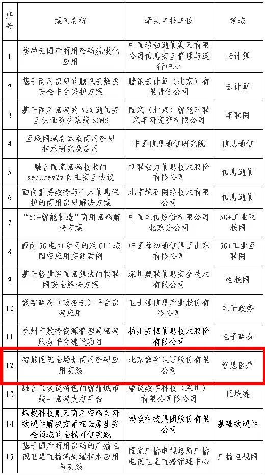 首届全国商用密码应用优秀案例名单