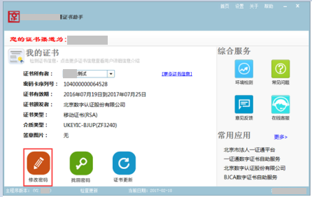 2) 打开BJCA证书助手,可以查看证书有效期。