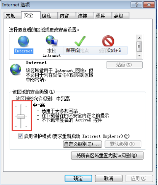 解决方案:请您打开并设置32位IE浏览器安全级别。